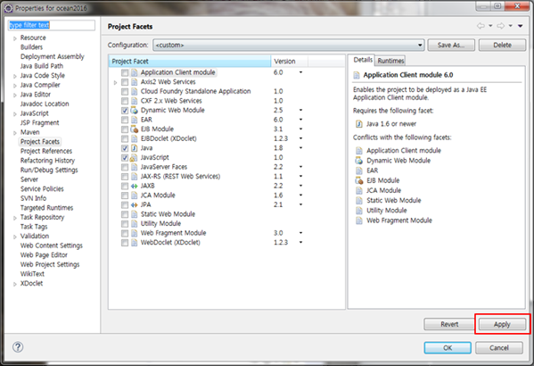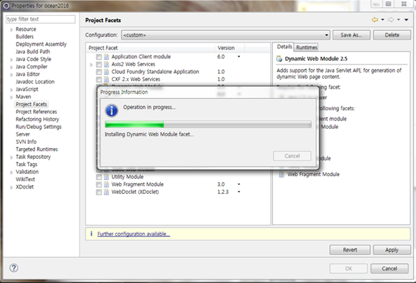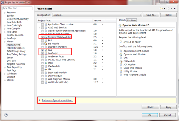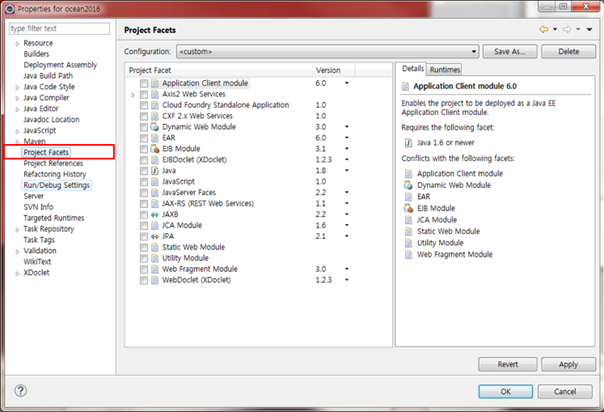 사이드 메뉴에서 Project Facets를 찾아 클릭합니다