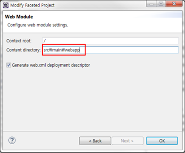 잘못지정해주면 웹프로젝트로 인식이 안되거나 다른데다가 WEB-INF 폴더를 만들어버리니