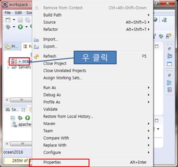 프로젝트를 우클릭하고 Properties를 클릭합니다